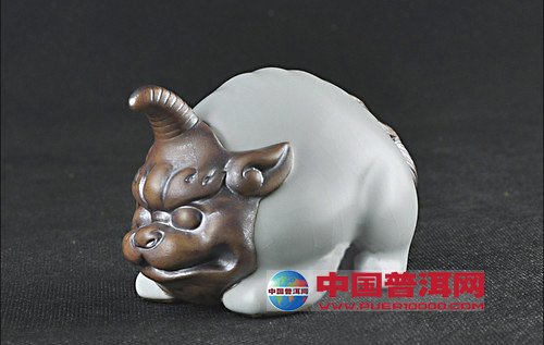 狴犴又叫宪章,相貌似虎,是惩戒及威慑邪恶的瑞兽。狴犴象征着威严,让不轨之徒望而生畏,常放在茶室中用来辟邪。但现在大部分狴犴茶宠样子都并不凶悍,放于茶盘中它更像一只乖巧的小猫。