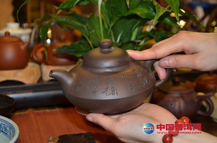“款”的意思有两层:一是鉴别壶的作者是谁,或题诗镌铭的作者是谁。另一层意思是欣赏题词的内容、镌刻的书画、还有印款(金石篆刻)。紫砂壶的装饰艺术是中国传统艺术的一部分,它具有中国传统艺术“诗、书、画、印”四位一体的显著特点。所以,一把紫砂壶可看的地方除泥色、造型、制作工夫以外,还有文学、书法、绘画、金石诸多方面,能给赏壶人带来更多美的享受。但是历来,紫砂壶是按人定价,名家名壶身价百倍。在商品社会尤其显得突出。这样市场上就容易出现许多模仿名家制作,伪造的赝品屡见不鲜,选购名壶尤其需要小心。