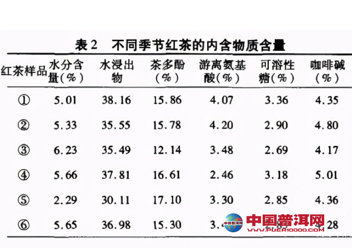红茶的咖啡碱含量最高,其次是春季,含量最低的是秋季,于是我们便可以知道夏季的