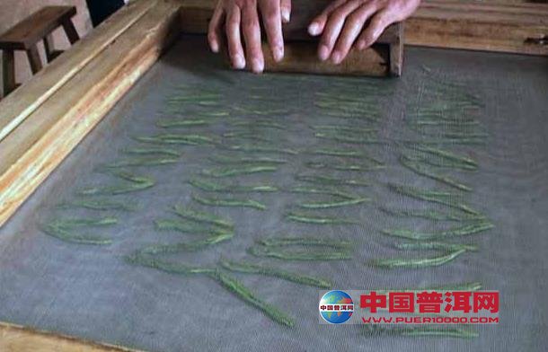 挑拣摊放:将采摘下来的鲜叶放置在挑拣板上进行挑拣,挑拣时茶叶太大或太小的不要,按照一芽二叶的标准进行挑拣,没有芽的茶叶不要,颜色不纯正的不要,被虫子弄坏了的茶叶也不要。挑拣好后,将茶叶平摊在竹垫上,时间差不多五个小时左右。