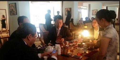 爱立信的中国区域副总裁赵钧陶先生莅临白沙溪展区品饮黑茶
