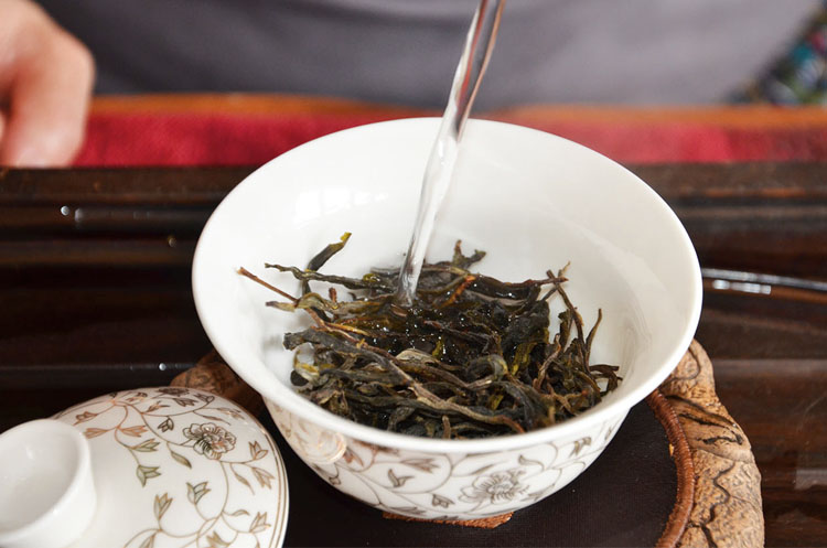 轻嗅干茶即有暗香,取6-8克入盖碗冲泡。