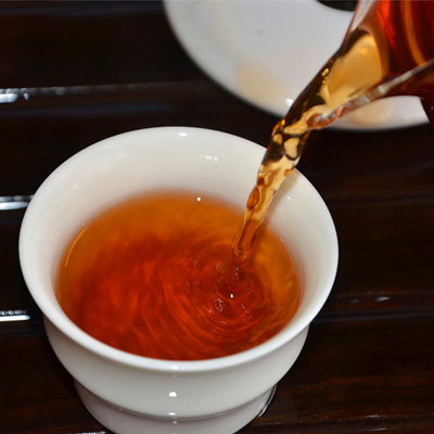 缓慢出汤,汤色栗红明亮;香气浓郁。