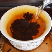果胶含量较高,我们已经冲泡了10次,但还未见茶头散开,呈褐色、油润,和常规普洱相比,它更多的是一份醇和与自然,在时光的点点滴滴中不慌不忙的改变着。