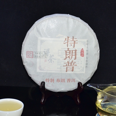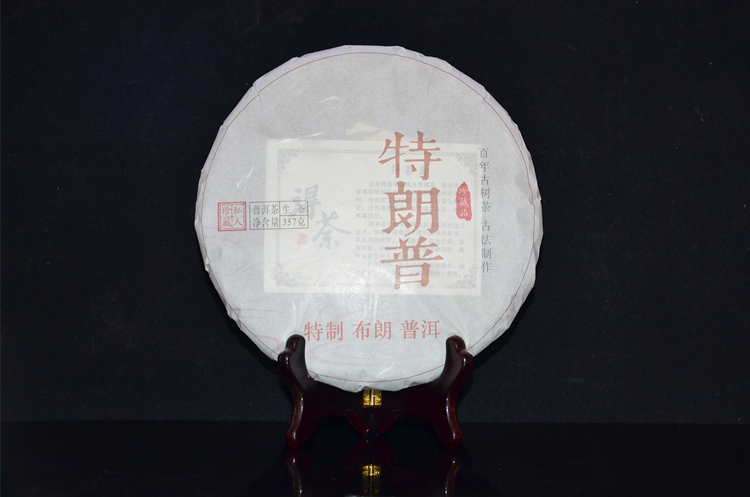 “特朗普”古树生饼净重357克,选用布朗山春茶传统晒青原料、手工石磨压制而成。