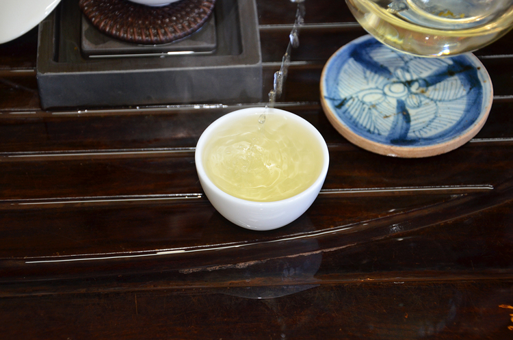 润茶过再次注水,茶水相融后缓缓倒进公道杯。