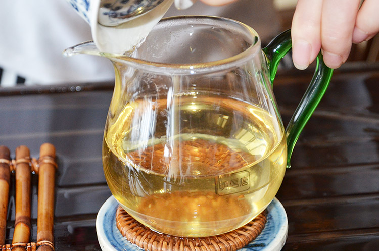 我们撬7克左右投入盖碗中,将沸水缓缓注入。