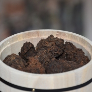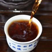 这批老茶头于勐海发酵,过程中讲究卫生清洁,后一直在昆明干仓存放,所以特别的干净。老茶头和岁月相濡以沫的韵味充分融合在茶汤中:赏汤色之酒红通透,品茶汤之醇和厚重。