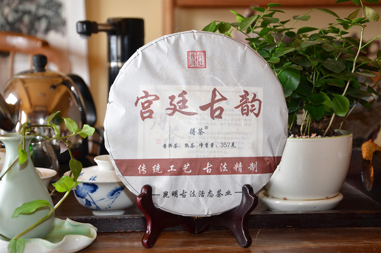 2017年宫廷古韵普洱熟茶,筛选全宫廷级别原料压制而成;饼型饱满、松紧适中。