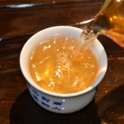 十多年过去了,由于存储环境相当好,转化出来的口感甚是绝佳。可以用香到爆口来形容,茶叶饼面芽头金黄,比雪印青饼还要好很多。