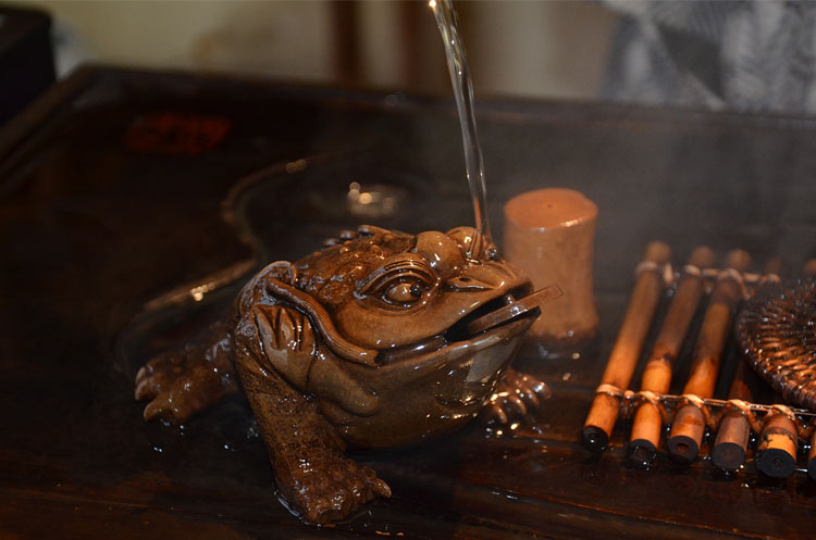 注入沸水浸泡茶叶,茶香四溢。