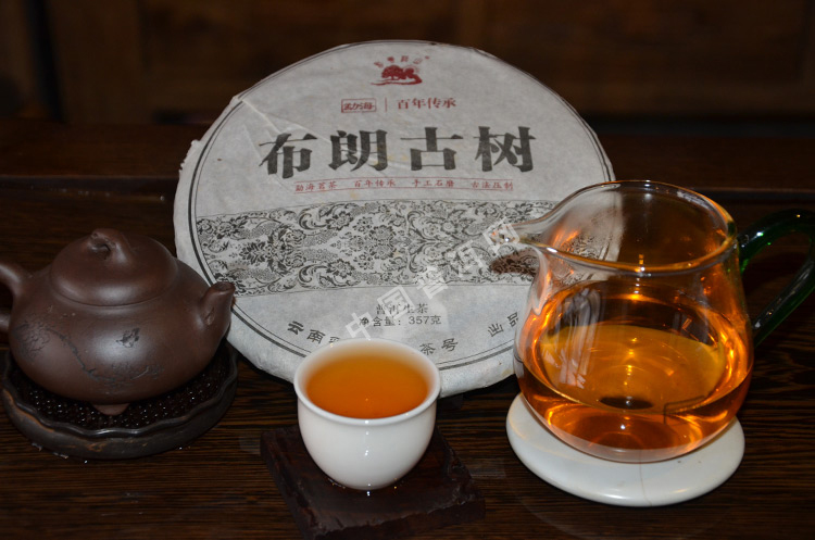 选用布朗山古树茶为原料,十多年的干仓老茶,饼面整洁漂亮,叶质细嫩匀齐,色泽均匀。