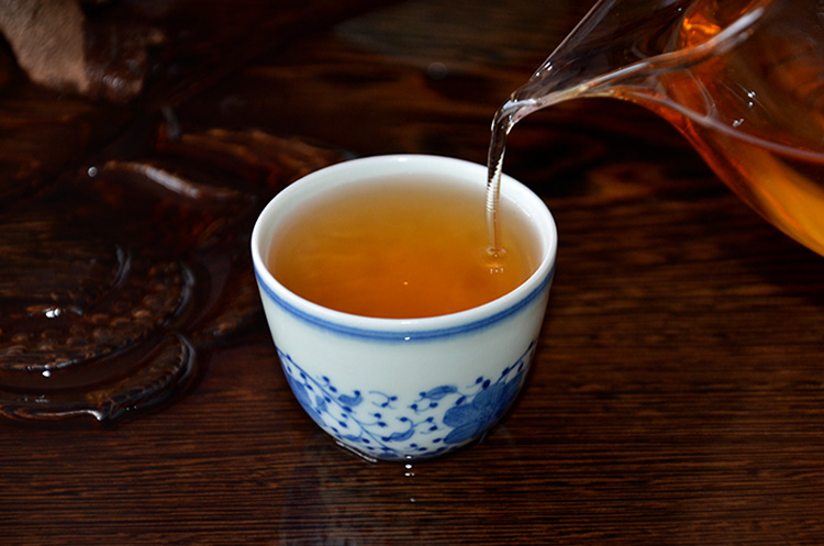 茶汤入口顺滑,干仓存放,茶香完全溶于汤中,汤汁的饱满醇厚和香甜柔和表现得淋漓尽致,喝着非常舒服。