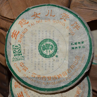 2005年生态女儿贡饼,精选布朗山乔木头春嫩芽,经过多年陈化,此茶已极为好喝,口感甜润厚滑,有类似麦芽糖的甜香,尾水冰糖甜,茶友亦称之为"小白菜"。