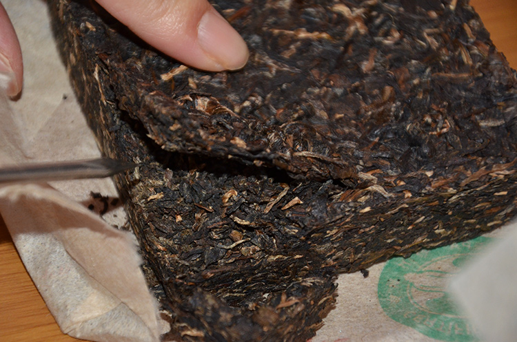 用茶针从边缘轻轻撬起一块。取8g左右茶样足矣,太多的话滋味会比较浓。