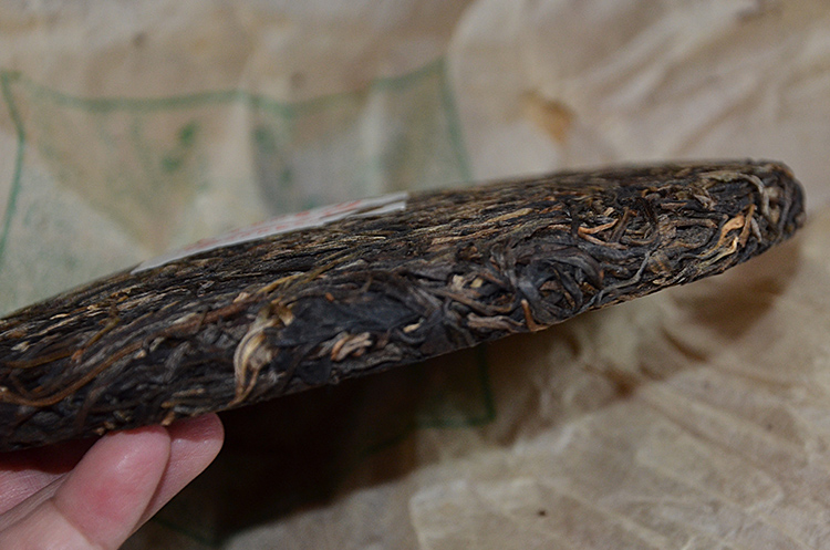 压制技术很好,饼体丰满而富有韵致,其外形,茶菁凹凸,叶叶清晰排列,极其优美。