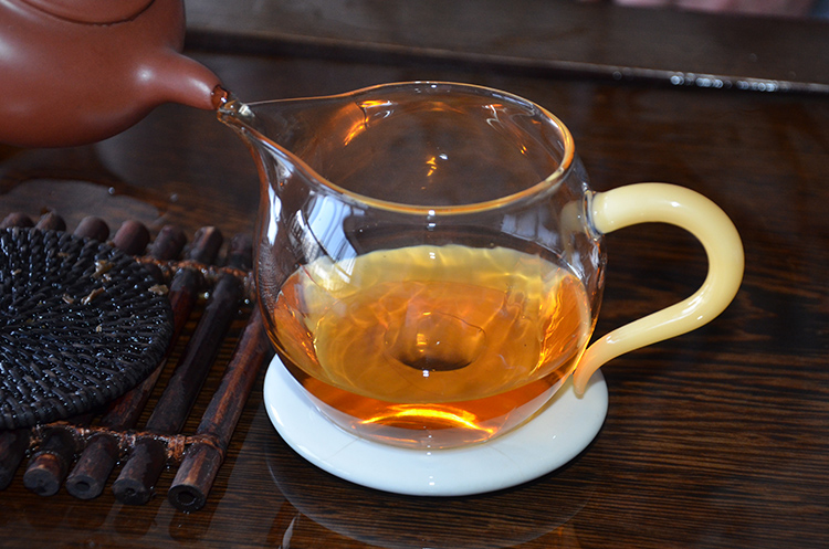 汤色清澈透亮,琥珀色,有油润感。没用滤碗,茶汤也没有任何杂质,可见用料工艺真的很好。