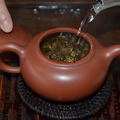 紫砂壶沸水高温冲泡,茶质干净,茶香浓郁。