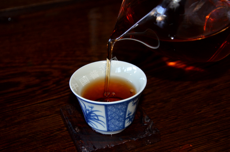 出汤,汤色褐红透亮,入口就是甜,非常纯净,韵润水甜,是不可多得的优质茶品。