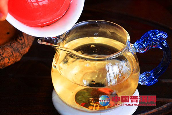 慢慢出汤......(茶越陈越香,汤色越来越黄亮,本图是当年压饼茶时所拍摄的,所以看上去很清,现在的汤色已经很诱人了,茶友们手上还有货的,可以拿出来看看)