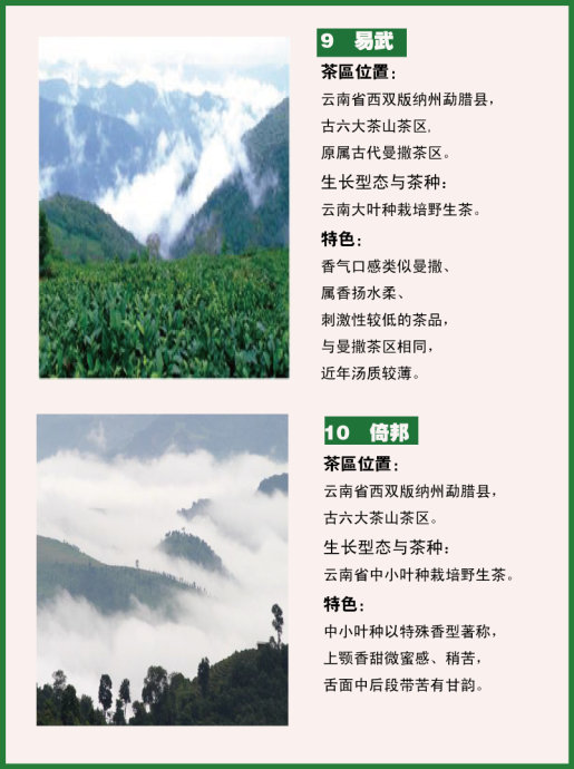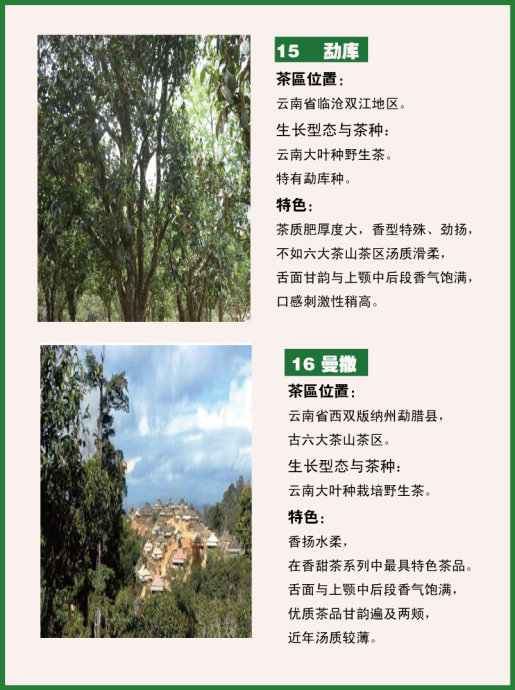 云南著名十六个山头各自普洱茶特色,几张图供大家作个简单了解。