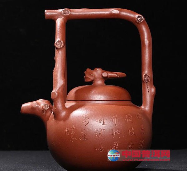 壶把雄壮有力,线条简练明快,上部舒展至于身桶衔接处又逐步收紧,收放恰到好处。