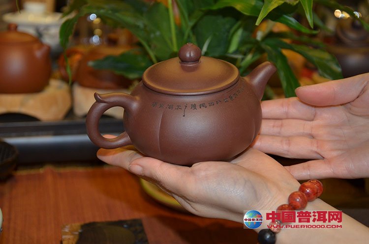此法即根据壶形加以命名这种命名方法通俗易懂、形象直观,可读名而知壶,是最常用的方法。如传统圆器之“掇球”壶,即因壶形似两球相累而名之;而“四方”、“八方”、“砖方”、“升方”壶则是直接描摹了方器的壶形。象形命名法尤其适合花货和筋囊货。如僧帽、合梅、南瓜、八卦龙头一捆竹,鱼化龙以及玉兰六瓣、菊花八瓣等;甚至还可以加上高矮、大小而加以区分,如高僧帽、大合梅等等;至于象秦权壶、井栏壶、柱础壶、竹简茶具、博浪锥壶等则完全以紫砂壶所仿制的器物直接命名。象形命名法的好处是可以由名思壶或睹壶思名,通俗形象,大众欢迎。