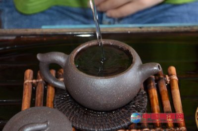 泡茶时趁壶身热将茶汁淋在壶身上,等茶汁倾倒出后,用干茶巾来回擦拭。这种方式养的壶,变亮较快,但养成后,最怕人的手气、水气,一旦沾到了壶面,则养成的光泽容易褪去,导致壶面光泽不匀。