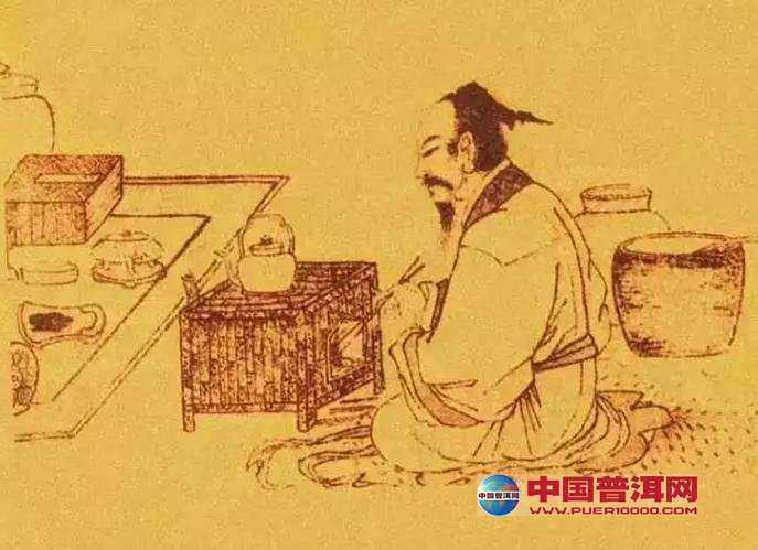 《煮茶图》,台北故宫博物院收藏。王问(1497—1576年),江苏无锡人,明代画家。此画是继王绂《竹炉煮茶图》后的又一以竹炉煮茶为题材的画。煮茶炉是竹炉,四方形,炉外用竹编成。画左边一童展开书画卷,一长者正在聚精会神地欣赏看。描绘了文人煮茶阅卷的情景。从这幅画中我们可以知道明朝早期,已用紫砂大壶煮茶。