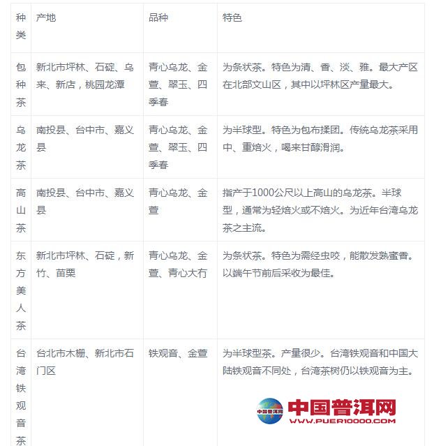 台湾乌龙茶产地及种类