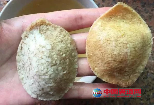 而白囊有苦涩味的,一般是年份较浅的陈皮,而10年以上的陈皮,白囊已陈化成淡棕色,则不会有苦味。具有和胃化湿、健脾消食的功效。所以老陈皮不必刮囊。