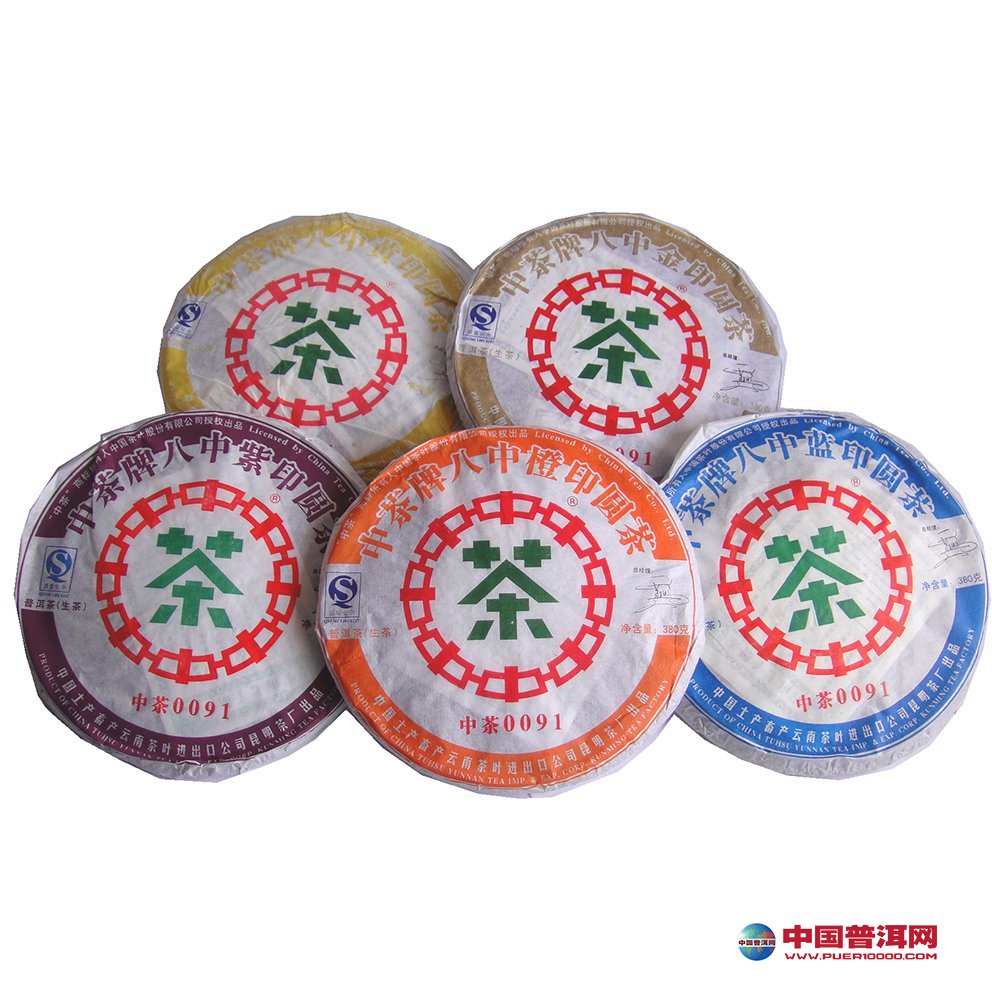 五大印记圆茶,即: 黄印大雪山; 蓝印思茅(今普洱市); 金印布朗山; 橙印攸乐山; 紫印双江勐库 1951年12月15日,中茶牌商标注册,是新中国成立后由中央私营企业局批准成立的全国性专业总公司;持续名列中国茶叶行业百强之首,是首批获得商务部颁发的茶