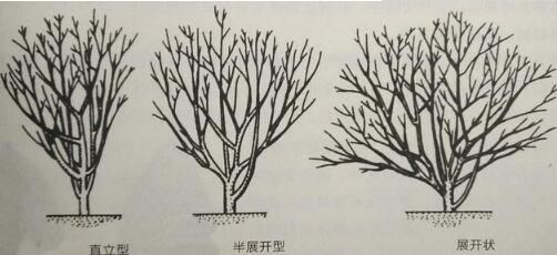 茎是茶树与叶、花、果联系的轴状结构,包括主干、分枝和当年生的新枝。主干和枝条构成树冠的骨架,担负着输导、支持和贮藏等作用。自然生长的茶树按照茎分枝习性的不同道常分为乔木型、半乔木型和灌木三种类型(如图5-2、5-3、5-4)。乔木型茶树,植株高大,主干明显,分枝从主干上部抽生,多为野生,抗寒性很弱,云南省的普洱、西双版纳和临沧等茶区有大量的乔木型野生茶树和古茶树分布;半乔木型茶树植株较高,虽然有明显的主干较,但分枝部位距地面较近,在我国华南和西南茶区栽培较多;灌木型茶树植株比较矮小,没有明显主干,枝干大多从靠近地面的根颈处长出,呈丛生状态,耐寒性较强,适宜在我国江北和江南茶区生长。树冠形状因分枝角度不同而分为直立状、半开展(半披张状)状和开展状(披张状)三种。主干系指根颈至第一级侧枝的部位,由胚轴生育而成。着生叶片的茎为枝条,是由叶芽发育而成,初期未成熟的称为新梢,新梢发育木质化,由青绿变浅黄到红棕,即称为枝条。枝条老化由浅灰色进而呈暗灰色。由主干上长出的侧枝称一级侧枝,从一级侧枝分生出的侧枝称为二级侧枝,依次类推。茶树分枝有单轴和合轴分枝二种形式,自然生长的茶树一般在龄期呈单轴分枝,以后转为合轴分枝。