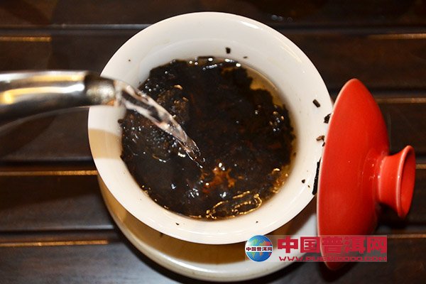 先用单手回转法,右手提开水壶注水,令水流先从茶壶壶肩开始,逆时针绕圈至壶口、壶心,提高水壶令水流在茶壶口内旋转注水,直至七分满时压腕注水(仍同单手回转手法);