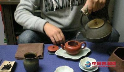 洗茶后,为保护细嫩的茶芽表面的绒毛及避免茶叶在杯中激烈的翻滚,应沿着白瓷