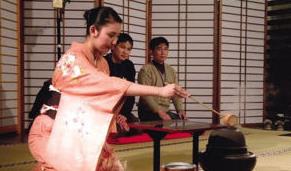 按照茶道传统,宾客应邀入茶室时,由主人跪坐门前表示欢迎,从推门、跪坐、鞠躬,以至寒喧都有规定礼仪。
