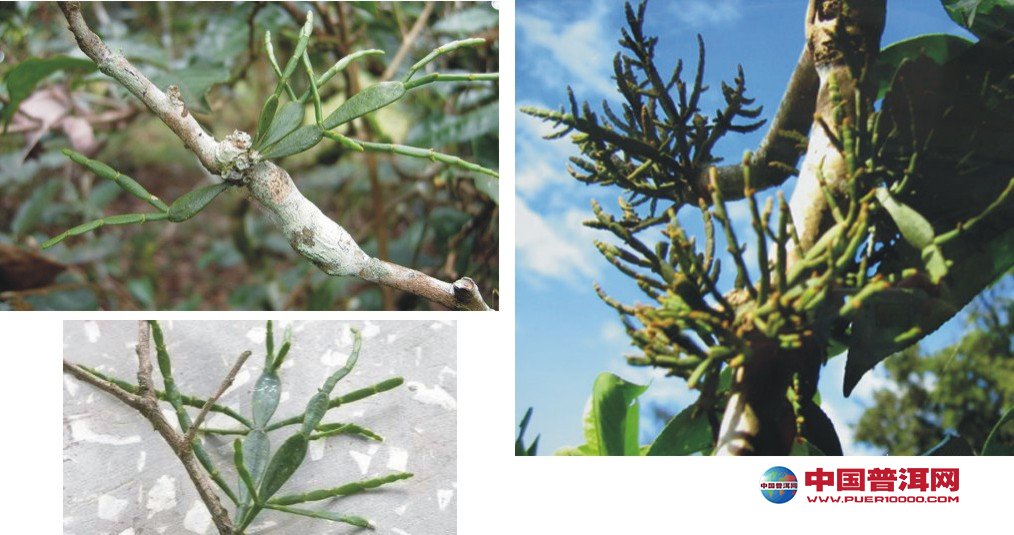 螃蟹脚——在上百年的古茶树才能找得到的一种寄生植物,目前由于过量采摘,野生数量已极为稀少,而且因其在野生状态下生长极为缓慢,市场价格也是居高不下。以前经常是在景迈出产茶品的茶面上压入一枝半截的,作为景迈古树茶的标志,现在已经不多见了。“螃蟹脚”为多生年草本,形状像小珊瑚,因寄生枝杆节状 带毫,故此被当地人称为“螃蟹脚”。据医学专家考证“螃蟹脚”其性寒凉,味微酸,饮之后回甘爽甜,具有清热解毒,健胃消食,清胆利尿,降低血脂,血压,对治疗宿食内小便赤热等有明显疗效。常 饮可防止血管硬化,消除疲劳,延年益寿,孕妇慎饮。