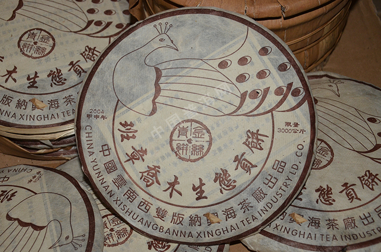 2004年班章孔雀乔木贡饼,经典系列老生普!有强烈的山野气韵,茶气强劲,烟蜜韵入汤,入口霸气,口感厚重,突显班章古茶之香!