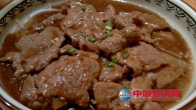 2、锅内留底油,放入蒜茸、姜末、葱花炒香,加上汤,放入牛肉片,再放入沙茶酱、老抽、盐、糖、味精,翻炒,勾芡,淋入香油即可。