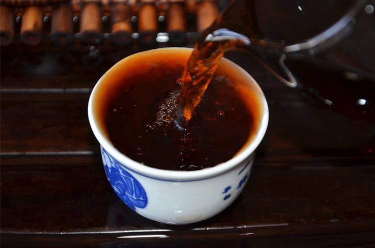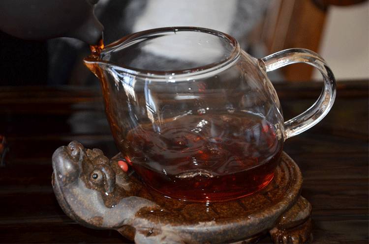 缓慢出汤,杯中红浓透亮,艳丽无比。