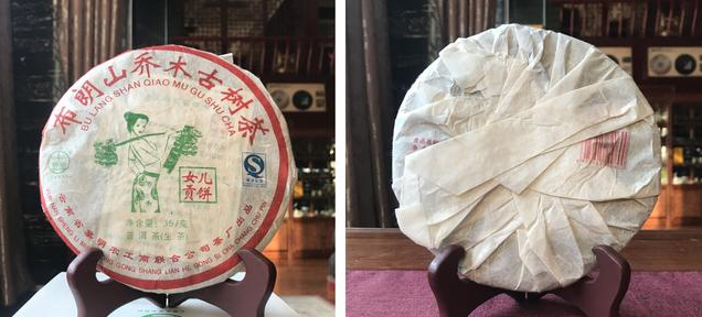 古树茶”字样,正中为《女儿采茶图》,此外还有