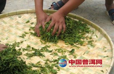 头天杀青的茶鲜叶,摊晾一晚,隔天早上再揉