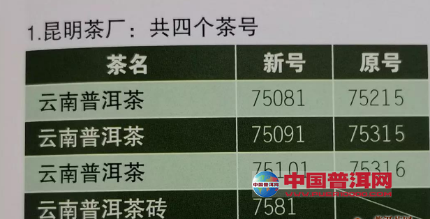 普洱茶的品种、花色初步制定了18个茶号,各厂具体如下: