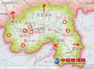 普洱古茶山以澜沧江为界划分为江内(即澜沧江以东)古六大茶山:攸乐、革登、倚邦、莽枝、蛮砖、漫撒(易武),江外(即澜沧江以西)新六大茶山:南糯、勐宋、景迈、布朗、巴达等。 古六大茶山现今还有不同说法:攸乐、革登、倚邦、莽枝、蛮砖、漫撒(易武)是历史上所...